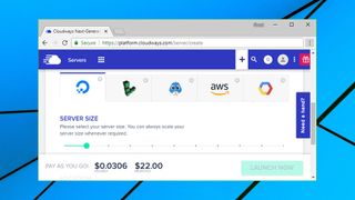 As you make your selection, a 'Pay as you Go’ price updates at the bottom of the screen. Our DigitalOcean setup cost only $0.0306 per hour, for instance, or $22 (£16.50) a month. Baseline linode and Vultr servers have similar prices, while AWS and Google Cloud start at a marginally more expensive $33 or $34 (£25).